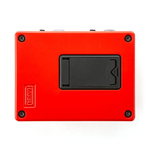 This pedal is powered by one 9-volt battery (accessible via battery door on bottom plate), a 9-volt AC adapter such as the Dunlop ECB003/ECB003EU, or an MXR Brick Series power supply.