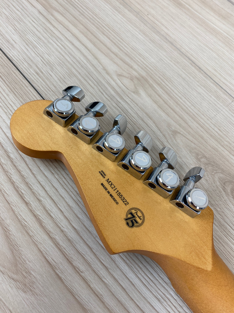At the heart of this Strat® is a trio of Player Plus Noiseless™ pickups – bright and touch sensitive, they offer classic Strat tone without hum. A push-pull pot on the tone control adds the neck pickup to switch positions 1 and 2 for two sounds not usually found on a Strat®. The silky satin Modern “C” Player Plus Strat® neck fits your hand like a glove, with smooth rolled edges for supreme comfort. The 12” radius fingerboard and 22 medium jumbo frets facilitate fluid leads and choke free bends. Smooth and responsive, the 2-point tremolo provides classic vibrato effects, while the locking tuners provide rock-solid tuning and make string changes quick and easy.