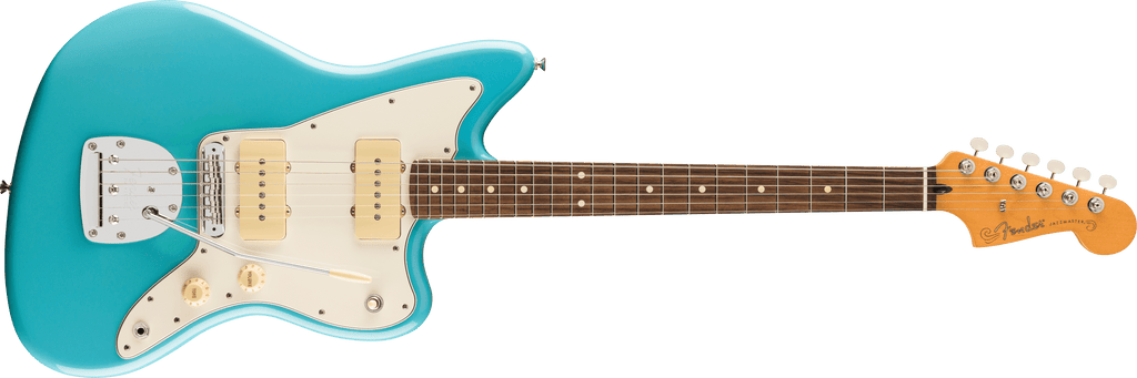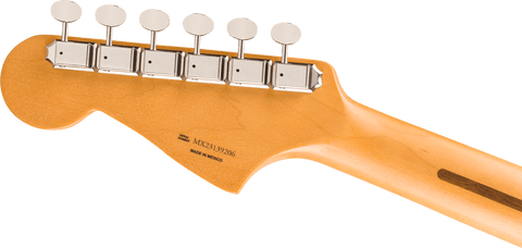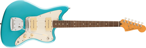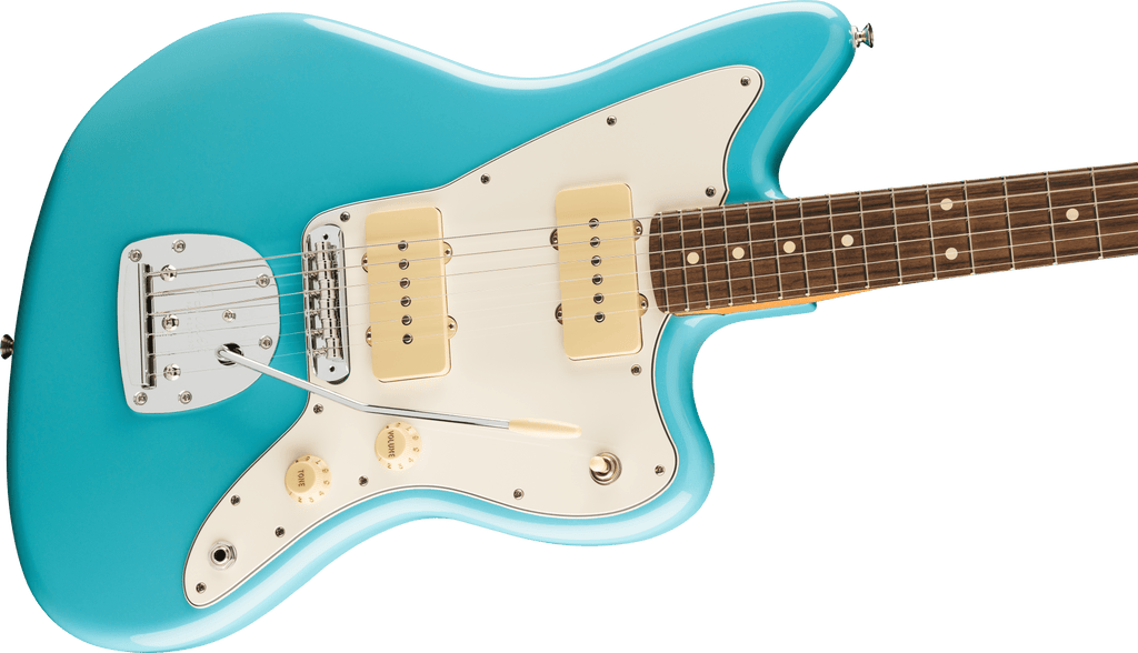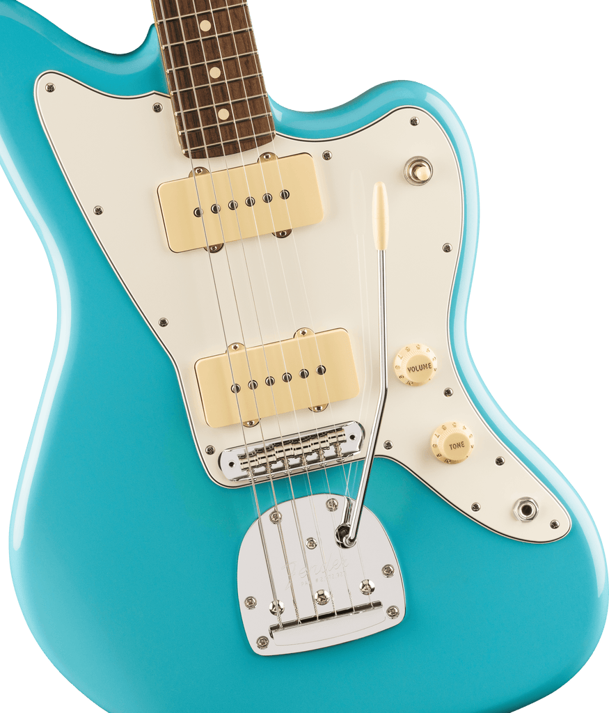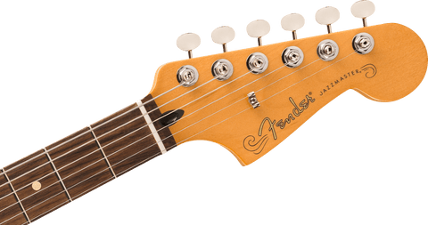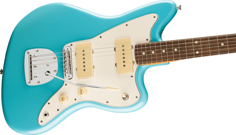 The Player II Jazzmaster radiates timeless Fender charm, but under the hood, it's primed for today's players. Everything about the neck is designed for fast and fluid playability, from the Modern “C”-profile with silky satin urethane finish on the back to the comfy 9.5”-radius slab rosewood fingerboard with smooth rolled edges and 22 medium jumbo frets. A classic alder body is available in both timeless Fender finishes and never-before-seen colors unearthed from the archives. Player Series Alnico V Single-Coil Jazzmaster pickups offer crystalline highs, musical mids and tight lows that elevate any genre. The 3-way toggle switch lets you easily dial in everything from glassy neck pickup chime to cutting bridge pickup bite and all points in between, while a 6-saddle Jazzmaster bridge with Floating Tremolo, upgraded Mustang® saddles and ClassicGear™ tuners ensure precise tuning stability.