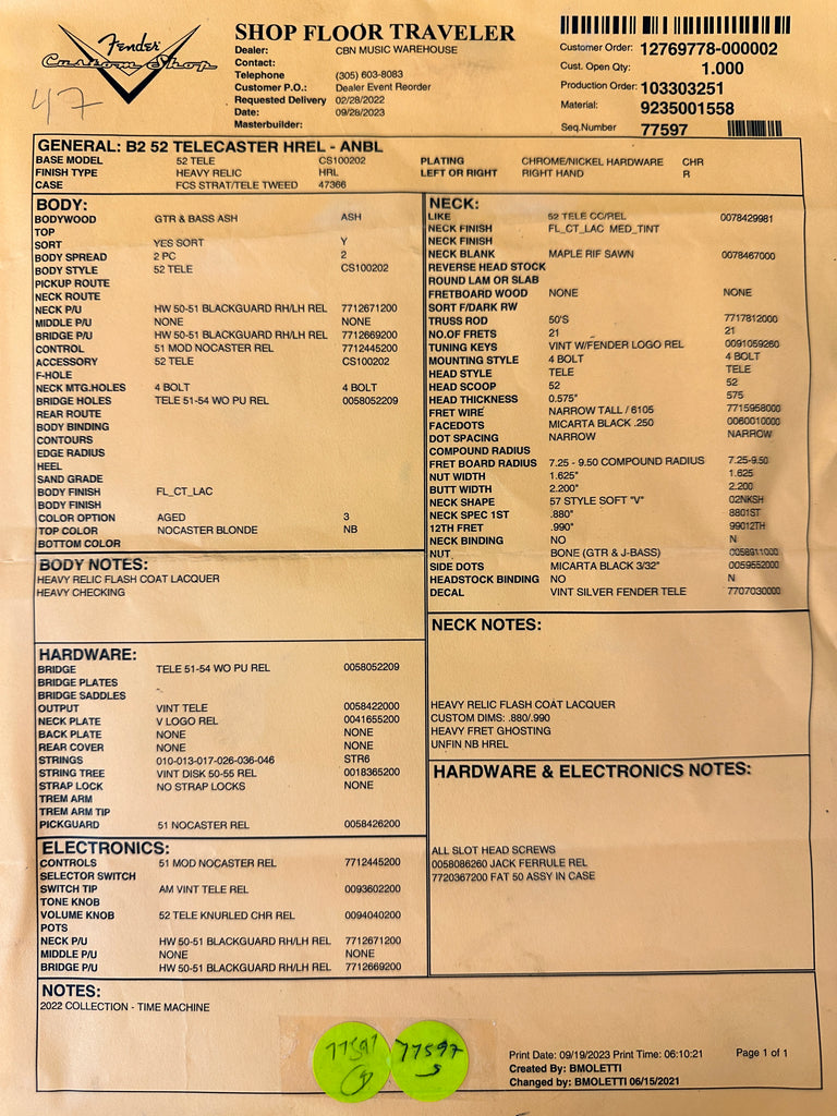 Fender Custom Shop 52 Telecaster Heavy Relic Aged Nocaster Blonde #R127108