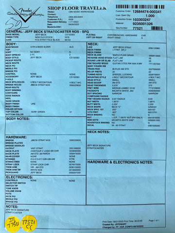 From his blistering British Invasion beginnings through his amazingly varied solo career and right up to today, Jeff Beck has made the Stratocaster® guitar an integral part of his signature sound. The Jeff Beck Signature Stratocaster features a thinner C-shaped maple neck with a rosewood fingerboard and a contoured heel for easier access to the higher registers. Further, it's "Wired" with dual ceramic Noiseless™ pickups and has a two-point synchronized tremolo with stainless steel saddles, LSR roller nut, aged knobs and pickup covers, and Beck's signature on the headstock.