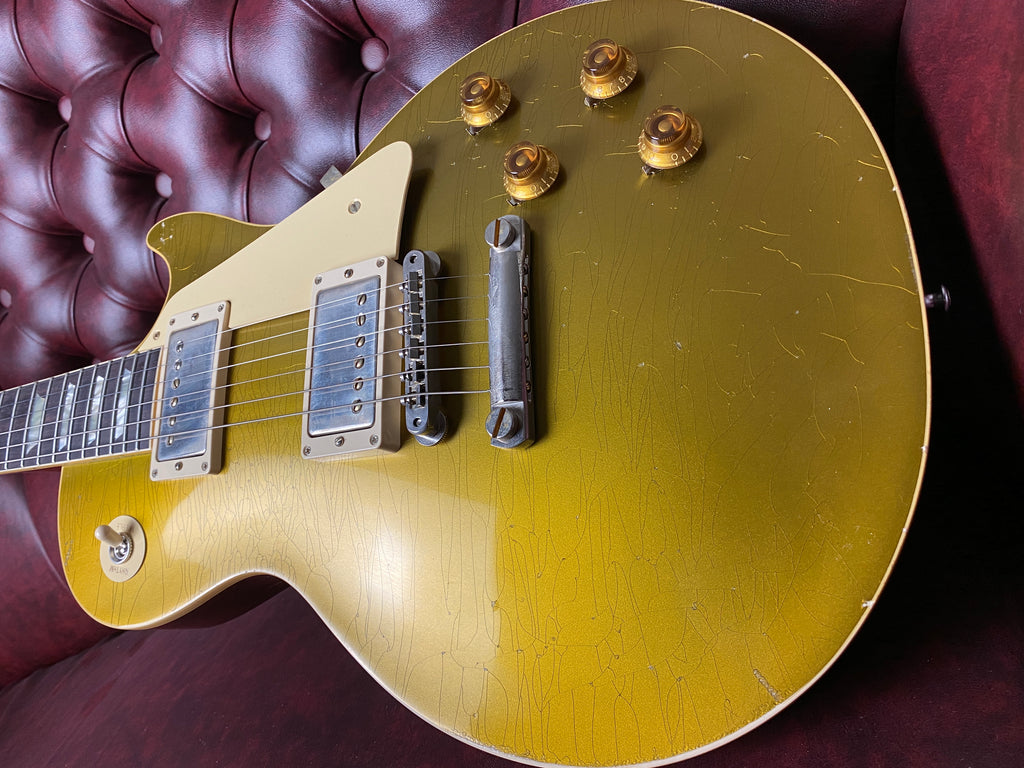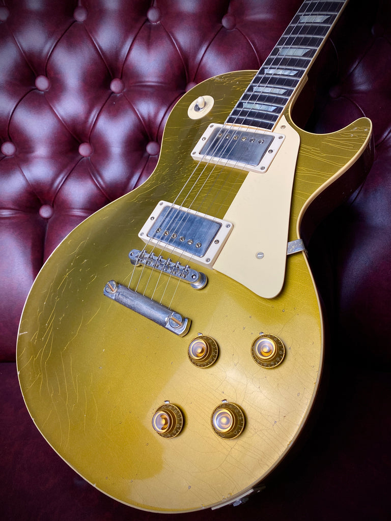 The iconic '57 Goldtop has been the tool of choice for countless guitar heroes. Its elegant gold finish, classic solid mahogany/maple construction and versatile humbucking pickups represent everything one could possibly need in a Les Paul™ model. This authentic recreation exemplifies Gibson Custom Shop's tireless quest for accuracy to the original year of production, from the woods to the construction to the parts and precise contours throughout. Each Custom Shop Reissue is every bit the instrument and statement piece as the priceless vintage examples, providing an ownership experience that is endlessly fun. It also features Light Aging by the skilled artisans of the Murphy Lab. The Murphy Lab Light Aged finish treatment, paired with lightly aged hardware, simulates decades of natural play wear, giving it the unique character, vibe, and feel of an original example from the Gibson Golden Era.