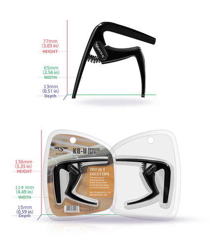 The Swiff K8-U is a capo made specialy for Ukuleles and other 4 string guitars.