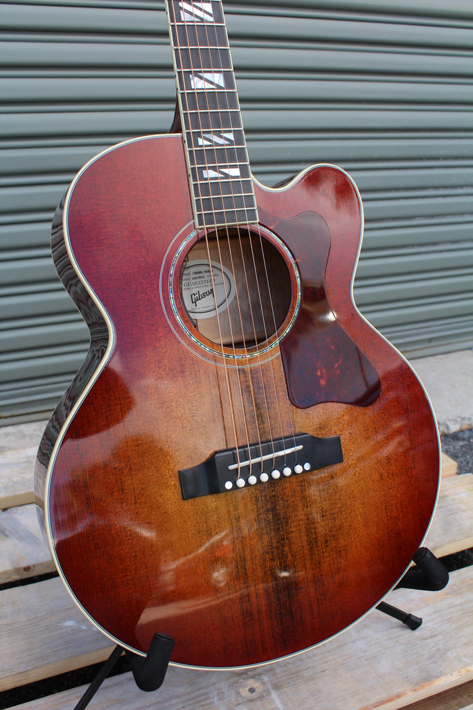 Hand-built using all the time-honored techniques that every Gibson acoustic receives, the Parlor Chroma acoustic-electric's sound is only matched by its stunning beauty. This 2019 model offers slimmer body depth and a modern Advanced Response neck profile for supreme playability in any position on the neck. The quilt maple back and sides are enhanced by Gibson's hand-sprayed Bourbon Burst. The Parlor Chroma acoustic-electric guitar comes complete with an L.R. Baggs Sessions pickup and ships with a hardshell case.