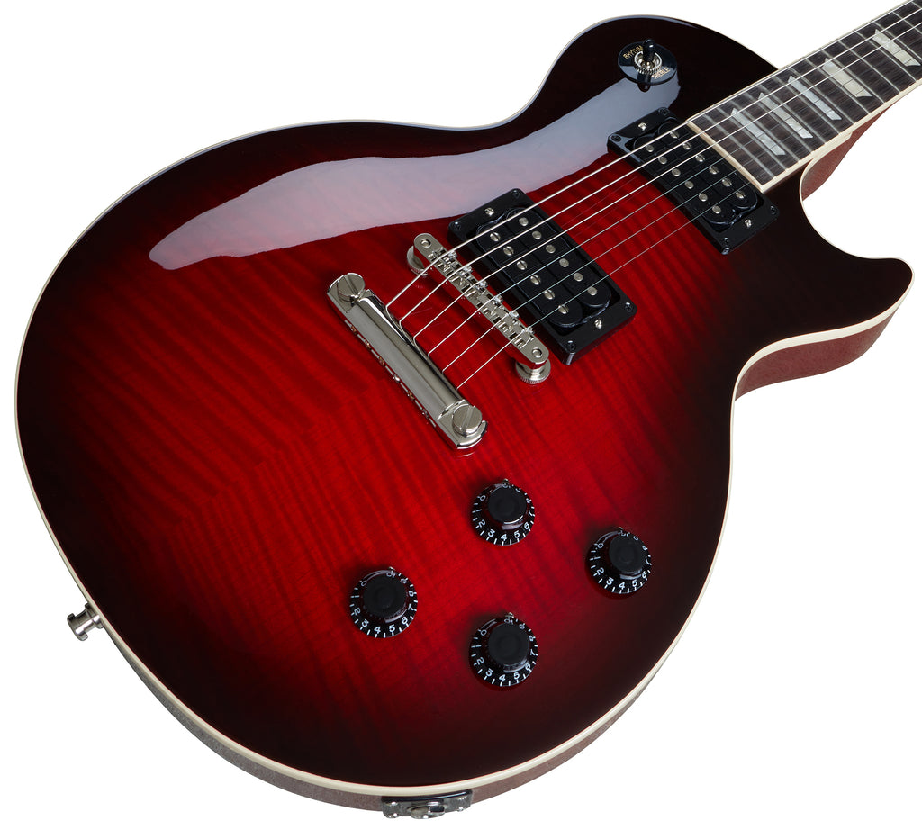 Gibson and Slash are proud to present the Slash Collection Gibson Les Paul Standard. It represents influential Gibson guitars Slash has used during his career, inspiring multiple generations of players around the world. The Slash Collection of Gibson guitars can be seen live on stage with Slash today. Each Slash Collection Gibson Les Paul Standard features a AAA flamed maple top, a solid mahogany body and Slash’s personal touches including a C-shape neck profile, Gibson Custom Burstbucker Alnico II pickups, color coordinated hardware appointments, hand-wired electronics with orange drop capacitors and a vintage style brown hardshell case. Exclusive to the Slash Collection are Slash’s “Skully” signature drawing on the back of the headstock, Slash’s signature on the truss rod cover, a blank truss rod cover in the case, Slash’s new Ernie Ball strings, and four Slash Jim Dunlop Tortex® picks. The Slash Gibson Les Paul Standard | Limited Edition is available in Vermillion Burst and Anaconda Burst.